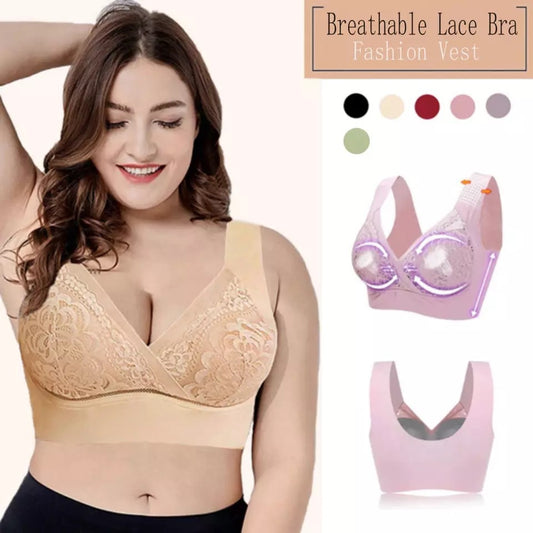 CurvaLuxe™ – Plus Size Kanten Bh Zonder Beugel met Comfortabele Drukverlagende Bandjes